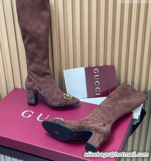 Good Product Gucci Leather Heel High Boots 6.5cm with Half Horsebit 851420 Dark Brown 2026