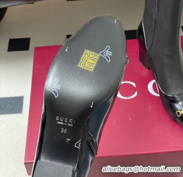 Discount Gucci Leather Heel Ankle Boots 6.5cm with Half Horsebit 849549 Black 2026