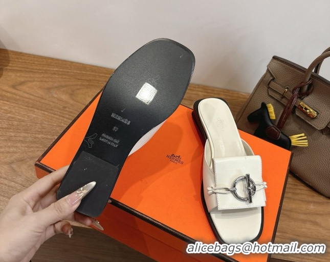 Unique Style Hermes Flat Slides Sandal in Calfskin Leather with Buckle White 2026 HS030401
