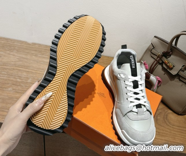 Your Position: Home > Shoes Plaza > Hermes Shoes > Sumptuous Hermes Leader Sneakers in Suede and Calfskin Leather Grey 1023035
