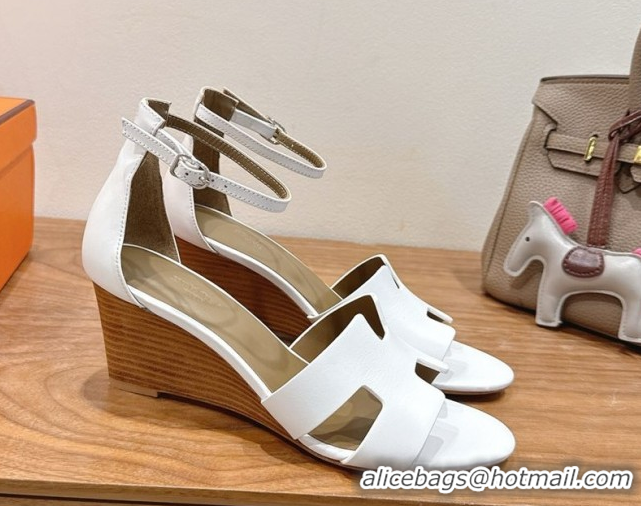 Charming Hermes Legend Wedge Sandals 7cm in Calfskin Leather White 0820130