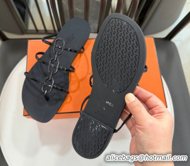 Low Price Hermes Mykonos Flat Slides Sandal in TPU with Chaine d'Ancre Black 2026 0304017