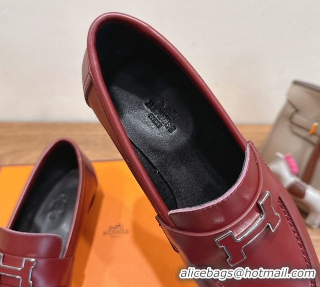 Your Position: Home > Shoes Plaza > Hermes Shoes > Charming Hermes Paris Loafers in Calfskin Leather with H Red 2025 H082005 0820035