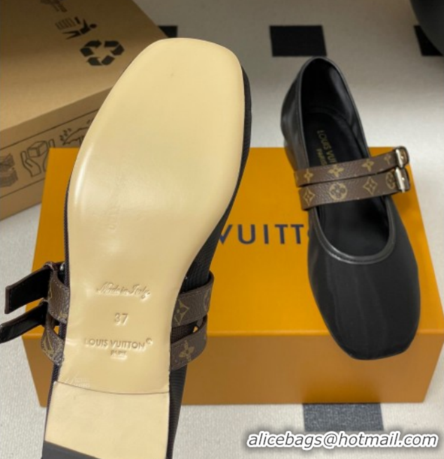 Most Popular Louis Vuitton Ballet Ballerinas Flat in Mesh and Buckle Strap 1AIS37 Black 1022086