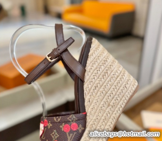 Charming Louis Vuitton Helios Wedge Sandals 11cm in Monogram/Red Cherry 2026 1AHLOA
