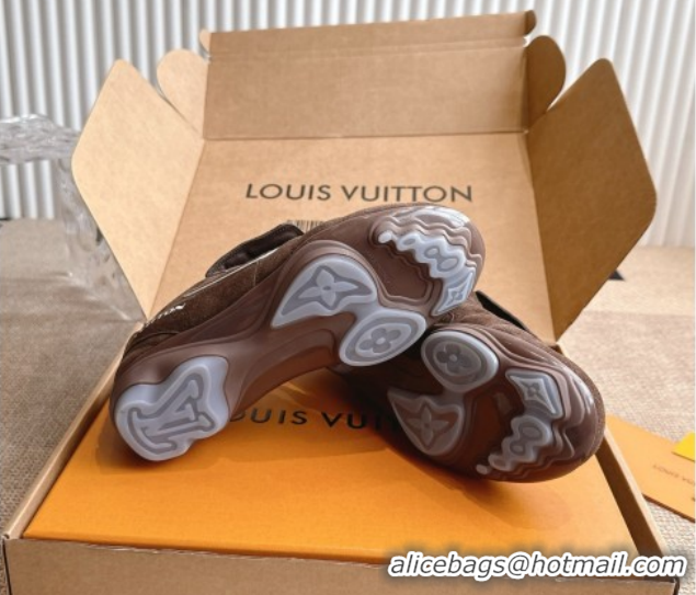 Unique Discount Louis Vuitton LV Footprint Soccer Sneakers in Suede Chocolate Brown 2025 0303104