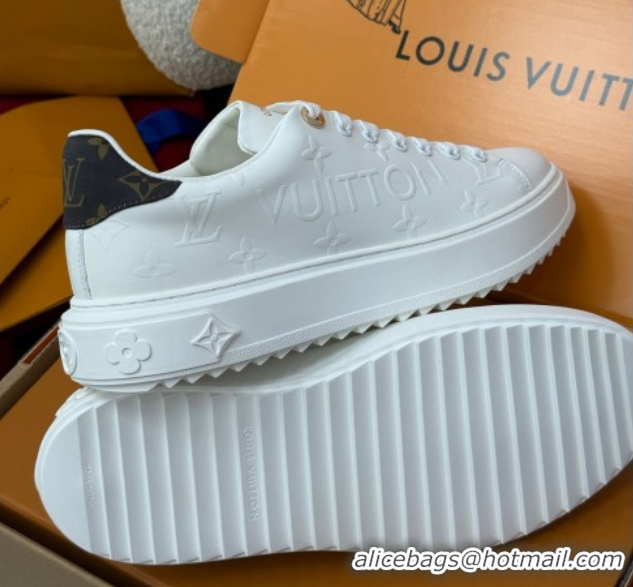 Charming Louis Vuitton Time Out Sneakers 4cm in White Debossed Monogram Leather 1AAP6O 0829010