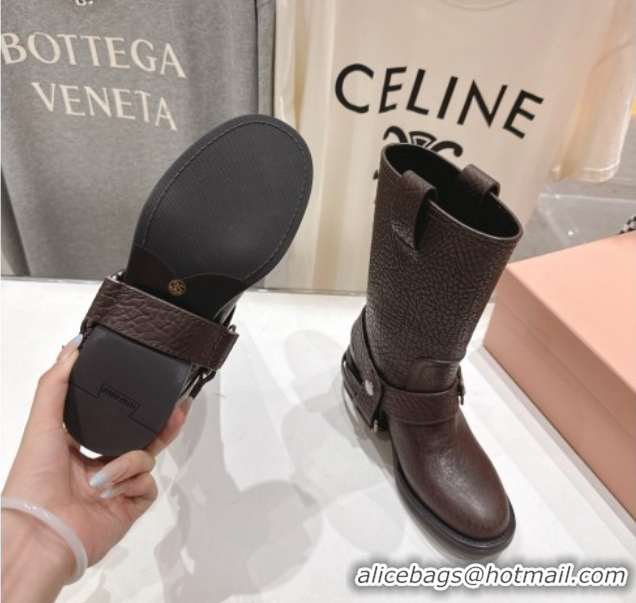Charming Miu Miu Embossed Leather Flat Ankle Boots with Buckle Brown MM102404 1024134 2025