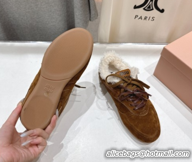 Durable Miu Miu Gymnasium Sneakers in Suede and Wool Brown 1024081