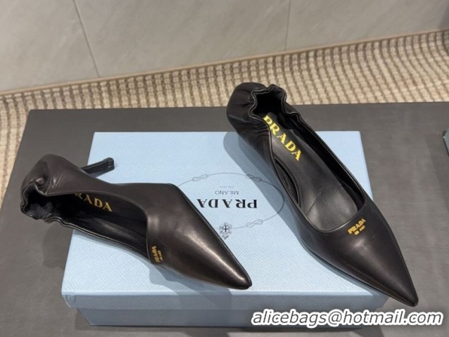 Charming Prada Leather Elastic Heel Pumps 5.5cm Black 1I188O 1205039 2026