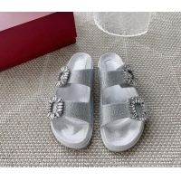Charming Roger Vivier Slidy Viv' Strass Buckle Slides Sandal Silver 704038