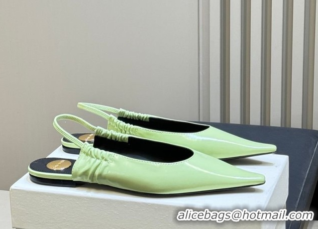 Good Quality Saint Laurent ANNE-MARIE Slingbacks Flats in Shiny Leather Green 2026 841183