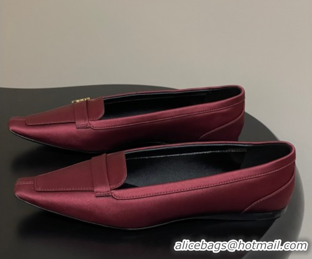 Charming Saint Laurent Poppy Ballerinas Flat in Satin Red 0825110
