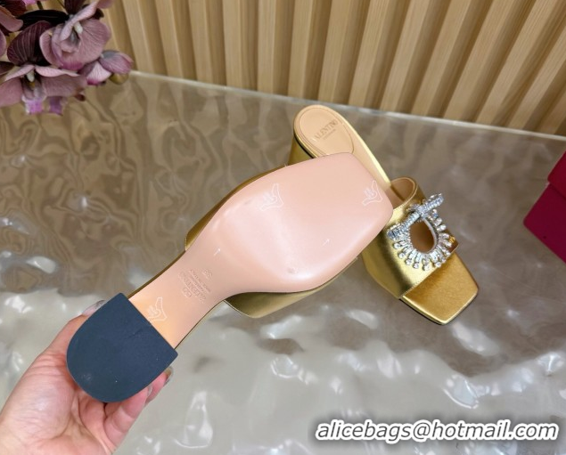Charming Valentino Strass Embellished Heel Slides Sandal 6cm in Calfskin Leather Gold VLTN121509 51215125