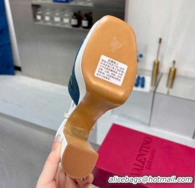 Best Product Valentino VLogo Signature Cherryfic Platform Sandals 11cm in Blue Denim and Leather White 1104098