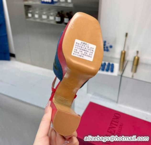 Charming Valentino VLogo Signature Cherryfic Platform Sandals 11cm in Blue Denim and Leather Red 1104099