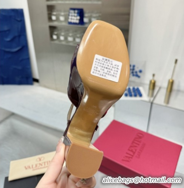Charming Valentino Vlogo Signature Platform Sandals 11cm in Patent Leather Burgundy 0902089
