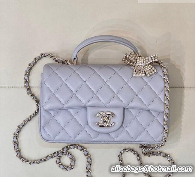 Your Position: Home > Chanel Handbag > Chanel 2026 Bags > Discount Chanel Lambskin Leather Mini Classic Flap Handbag With Top Handle and Bow Charm AS2431 Dusty Purple 2026