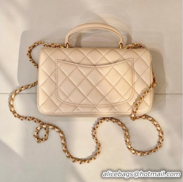 Cheap Chanel Lambskin Leather Mini Classic Flap Handbag With Top Handle and Bow Charm AS2431 Apricot 2026