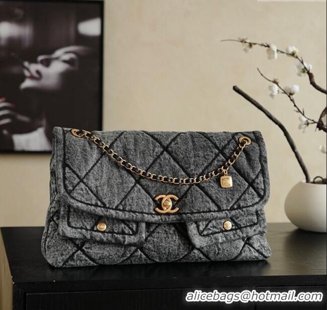 Low Cost Chanel Washed Denim Maxi Flap bag with Pockets AS5727 Black 2025