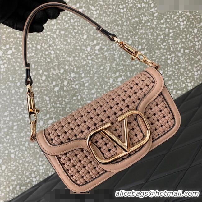 Cheap Design Valentino Loco Small Shoulder Bag in Woven Leather 5041 Rose Beige 2024