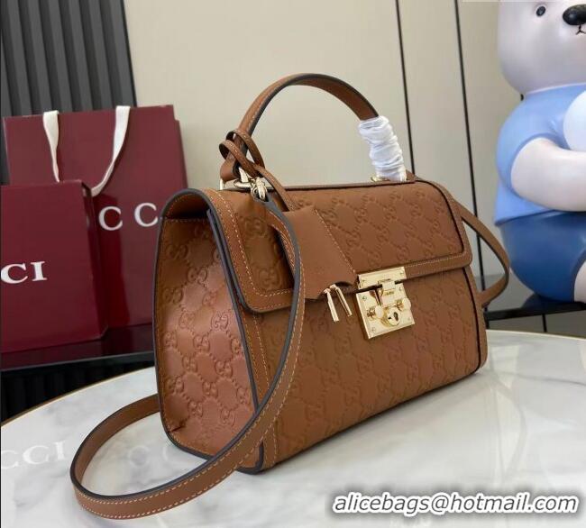 Cheap Gucci Padlock GG Leather medium top handle bag 838998 Brown 2025