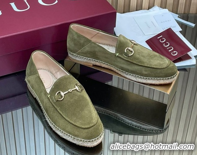 Classic Gucci Suede Flat Espadrilles with Horsebit GG121805 Green 2026