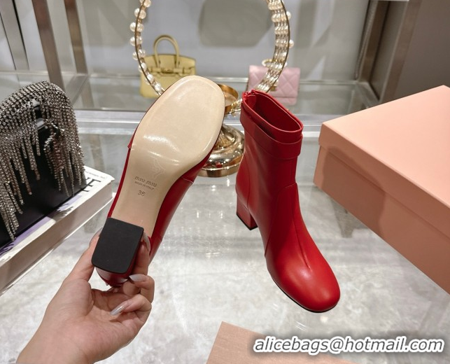 Cheap Price Miu Miu Nappa Leather Heel Ankle Boots 6cm with Buckle Red 2025 5W548E 0826033