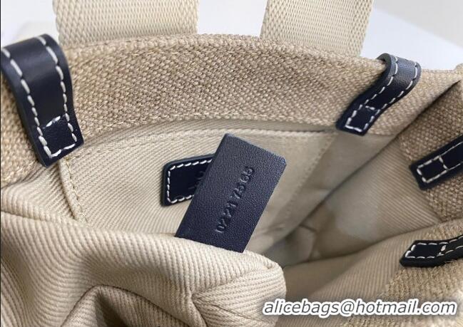 Best Quality Chloe Mini Woody Tote Bag in Linen Canvas and Calfskin Leather 1120 Dark Blue 2025