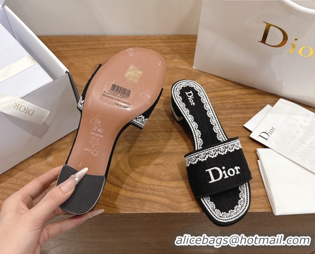 Cheap Price Dior Dentelle Heeled Slide Sandals in Black Dior Oblique Embroidered Cotton and White Lace 6012218 2026