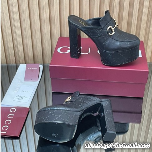 Cheap Price Gucci GG Leather Platform Mule 13.5cm with Horsebit 835315 Black 2025