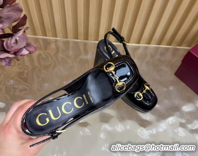 Luxury Discount Gucci Patent Leather Platform Slingbacks Pump 11cm with Horsebit GG121803 Black 2026
