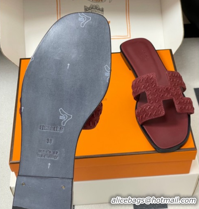 Charming Hermes Classic Oran Flat Slides Sandal in Braided Suede Burgundy 1023102