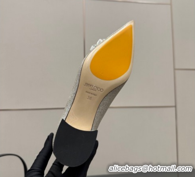 Durable Jimmy Choo Auria Pumps in Silver-Tone Glitter with Strass Bow 1210072