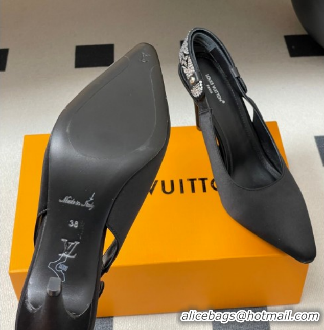 Cheap Price Louis Vuitton Legacy Slingbacks Pump 9cm in Satin and Strass Black 1AISLV 1219131