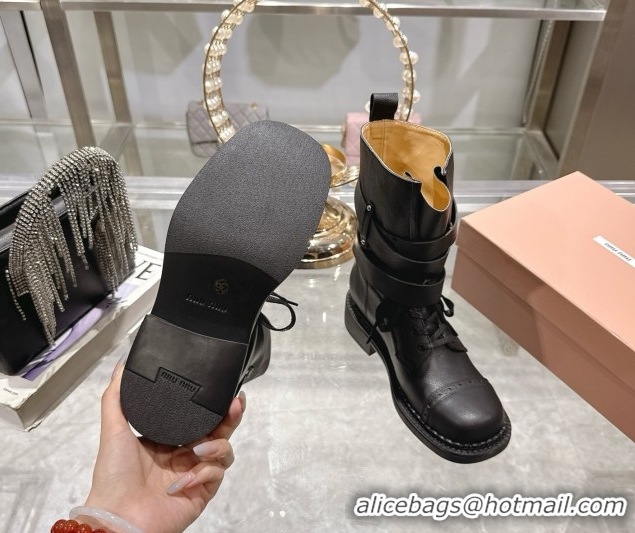Duplicate Miu Miu Leather Ankle Boots 3.5cm with Buckle Black MIU082604 50826037