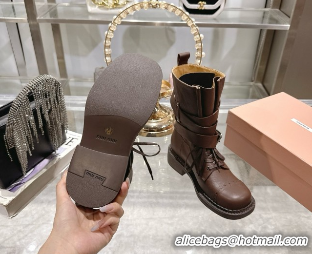 Cheap Price Miu Miu Leather Ankle Boots 3.5cm with Buckle Brown MIU082604 0826038