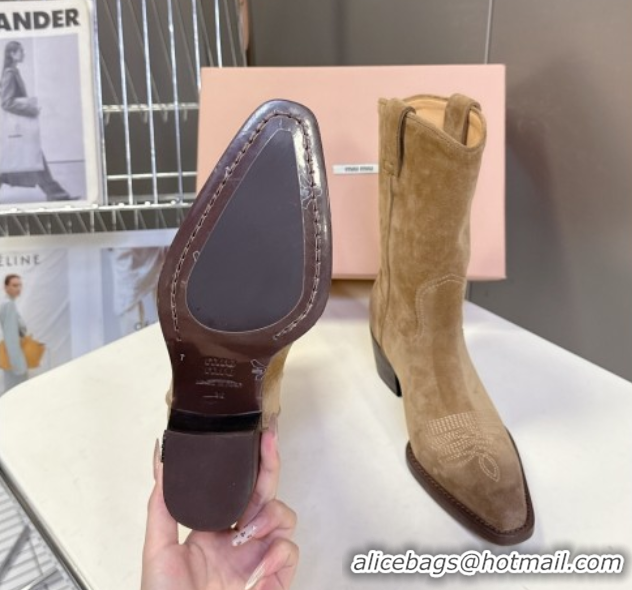 Hot Style Miu Miu Suede Heel Ankle Boots 5cm Beige MIU082605 0826039