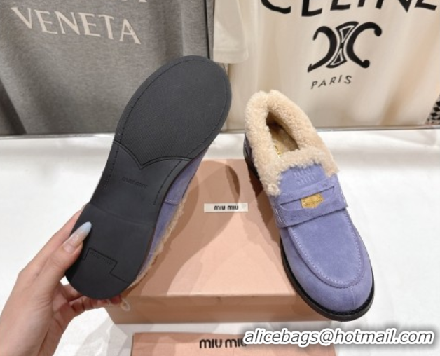 Discount Miu Miu Suede and Wool Loafers with Coin Purple 5D530E 1025060 2025