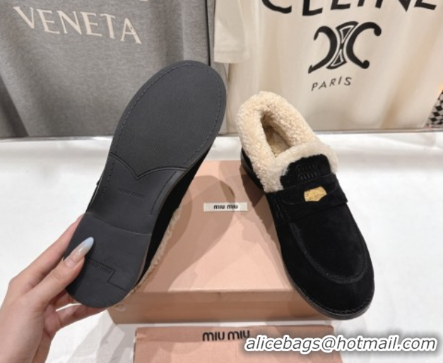 Cheap Price Miu Miu Suede and Wool Loafers with Coin Black 5D530E 1025061 2025