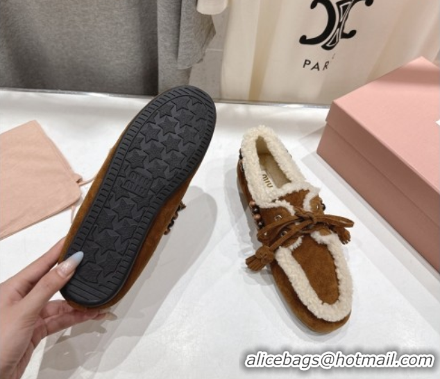 Cheap Price Miu Miu Tassel and Beads Loafers in Suede and Wool Brown2 5D518E 1025007 2025
