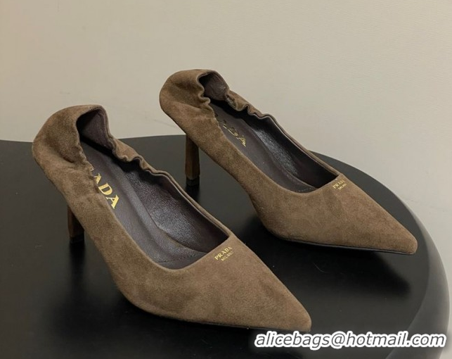 Luxury Prada Suede Elastic Heel Pumps 7.5cm Taupe 1I188O 1205034 2026