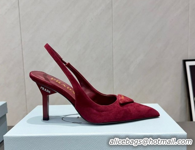 Cheap Price Prada Suede Heel Slingbacks Pump 8.5cm Red PR120501 1205023 2026
