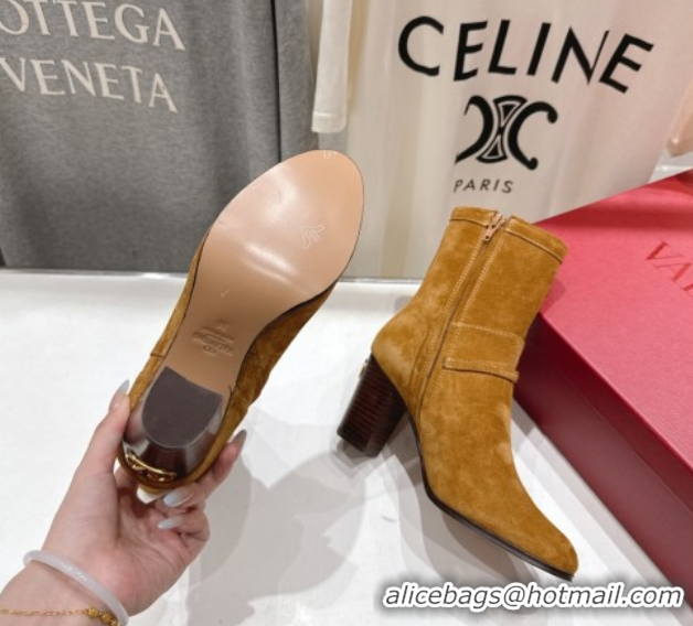 Top Design Valentino Suede Heel Ankle Boots 7.5cm with Buckle Brown Yellow 1028032