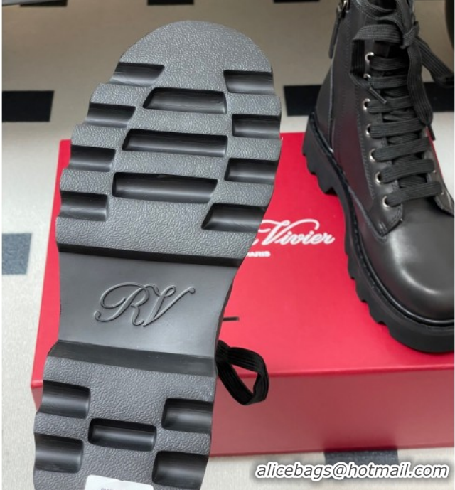 Cheap Roger Vivier Viv' Rangers Truck Ankle Boots 5cm in Calfskin Leather with Metal-Tone Buckle Black/Gold 1212037 2026