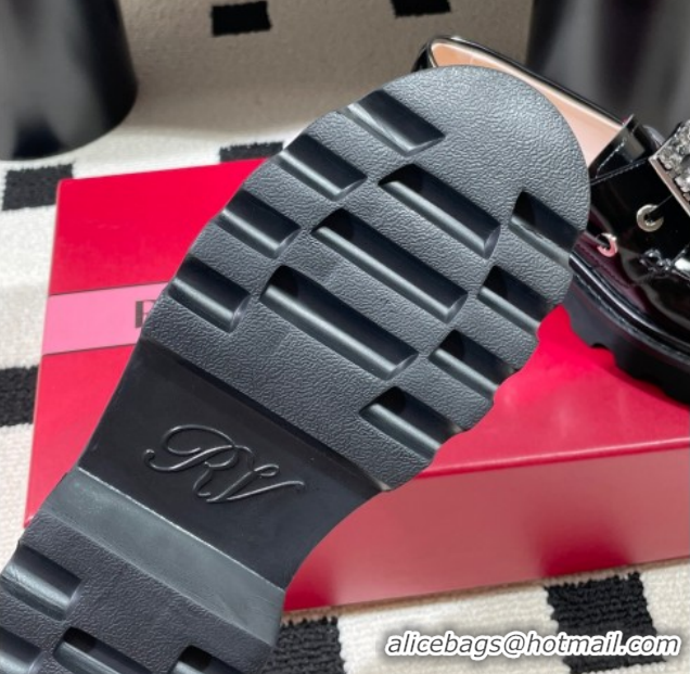 Cheap Roger Vivier Viv' Rangers Truck Boat Shoes 4.5cm in Shiny Leather with Strass Buckle RV121208 Black 2026