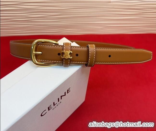 Cheapest Celine Elegant Charm Triomphe Belt 2.5cm with Gold-Tone Pin Buckle in Calfskin Leather 16052 Tan Brown 2026