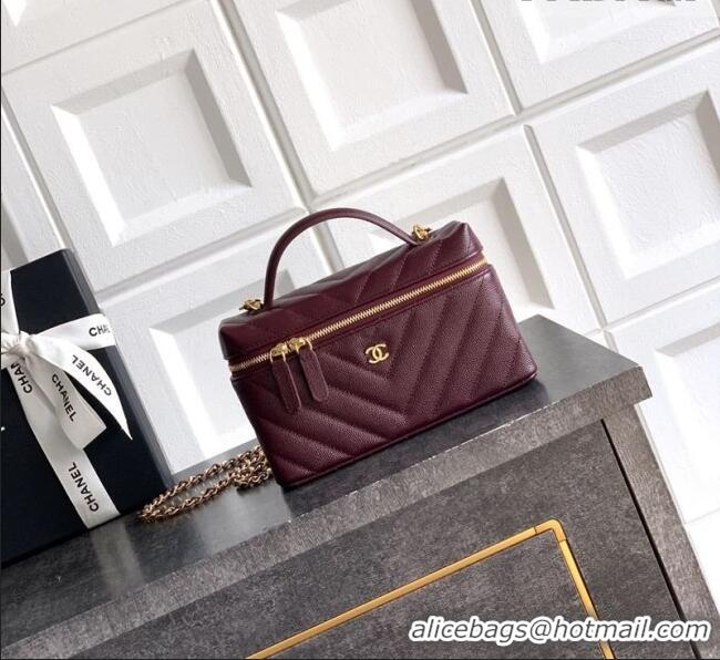 Cheapest Chanel Vanity with Chain in Chevron Grained Calfskin AP5212 Burgundy 2026