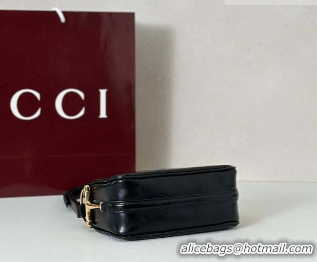Cheapest Gucci Half Horsebit mini shoulder bag in Crinkle Patent Leather 860784 Black 2026