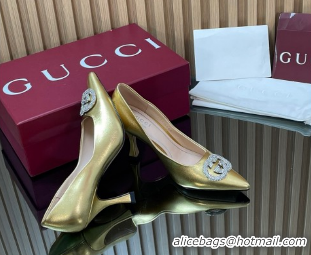 Cheapest Gucci Metallic Leather Pumps 8.5cm with Strass Interlocking G 852995 Gold 2026